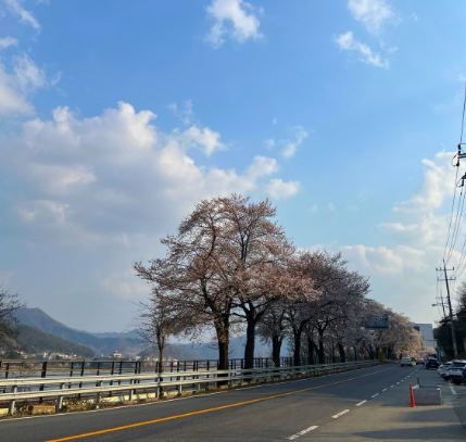 봄에는 벚꽃이 흩날리며 길 위를 덮고, 가을에는 단풍잎이 차 위로 내려앉아 드라이브 자체가 풍경이 됩니다.