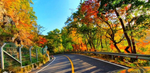 여름에는 짙은 녹음이 터널처럼 차를 감싸고, 가을이면 불타는 듯한 단풍길이 펼쳐져 운전 내내 감탄을 자아냅니다.