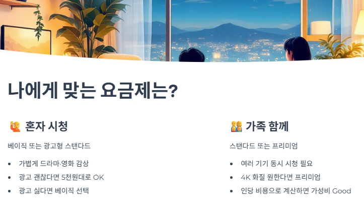 | 광고형 스탠다드 | 약 5,500원 | 2대 | 1080p, 광고 있음 |