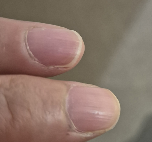 손톱이 건조해지면 조금의 자극에도 결이 쉽게 생기고 세로줄이 굵어져 보입니다.