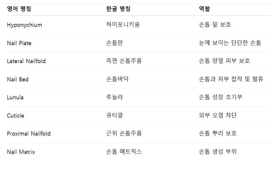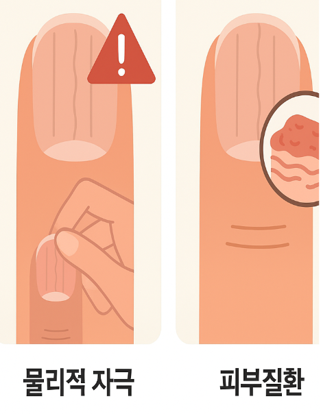 | 4. 손톱·큐티클 자극 | 젤네일·아세톤·손톱 물어뜯기 등 반복 자극으로 손상 → 줄·패임 발생 |