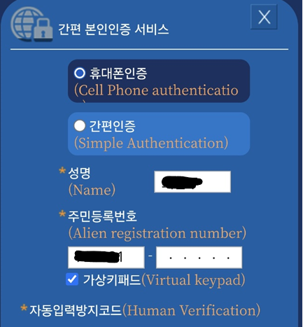 - 휴대폰 인증 또는 공동인증서로 로그인
