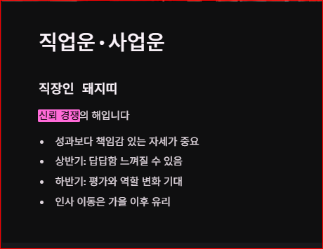 | 9월 | 직업·역할 변화 운이 강합니다. 준비된 사람에게 기회가 옵니다. |